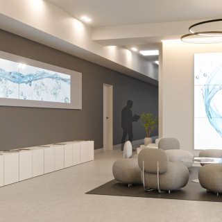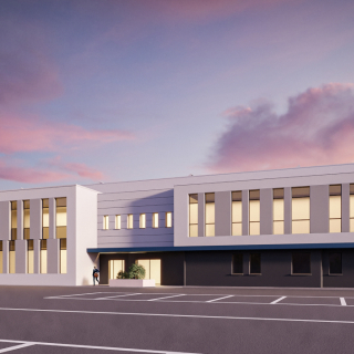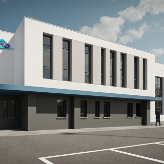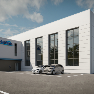 Realizzata in appena 10 mesi su un lotto di 7000 mq di estensione, la nuova sede amministrativa e logistica della Soc. Coop Delfino ospita 700mq. di uffici e un magazzino attrezzato di circa 2500mq. di superficie. L'intervento ha comportato la costruzione ex. novo del fabbricato, e l'urbanizzazione del lotto.