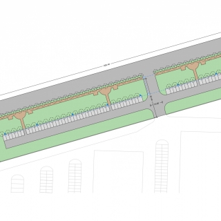 Alla realizzazione dell'area così come a quella dei comparti adiacenti, il PRG comunale aveva legato l'attuazione di una importante bretella stradale di collegamento tra la S.S. 64 e la SP 65 -San Donato, a servizio del comparto industriale di Ca' de' Fabbri. Ogni comparto di nuova urbanizzazione avrebbe dovuto realizzare e cedere il tratto di "sua" competenza. Dalla superficie territoriale iniziale, il progetto ha quindi stralciato una striscia di 40 metri di larghezza sufficienti a realizzare l'arteria di traffico prevista dal PRG, larga 15 metri, e parallelamente ad essa sulla restante parte di 25 metri di larghezza, le aree destinate al verde pubblico e ai parcheggi pubblici derivanti dalla sua urbanizzazione. In attesa della realizzazione della nuova arteria stradale il PPIP ha previsto una strada di accesso provvisorio dalla viabilità comunale esistente che è stata realizzata e ancora oggi serve il comparto in attesa che le previsioni di PRG vengano attuate.