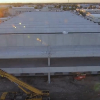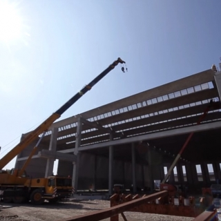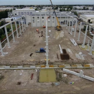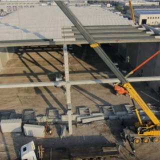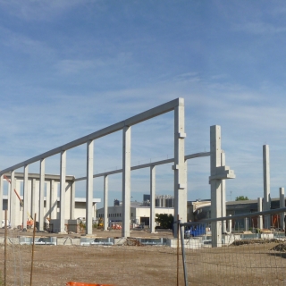 Realizzato con struttura in cemento armato precompresso alta 13 metri, il magazzino è dotato di un corpo laterale destinato ai servizi per il personale addetto. Sul fronte accessibile dalla viabilità pubblica, un grande piazzale permette l’ingresso e la manovra degli autotreni in avvicinamento alle bocche di carico. Tutta la zona di carico è coperta da un avancorpo posto al piano rialzato, avente un fronte di 50 metri e