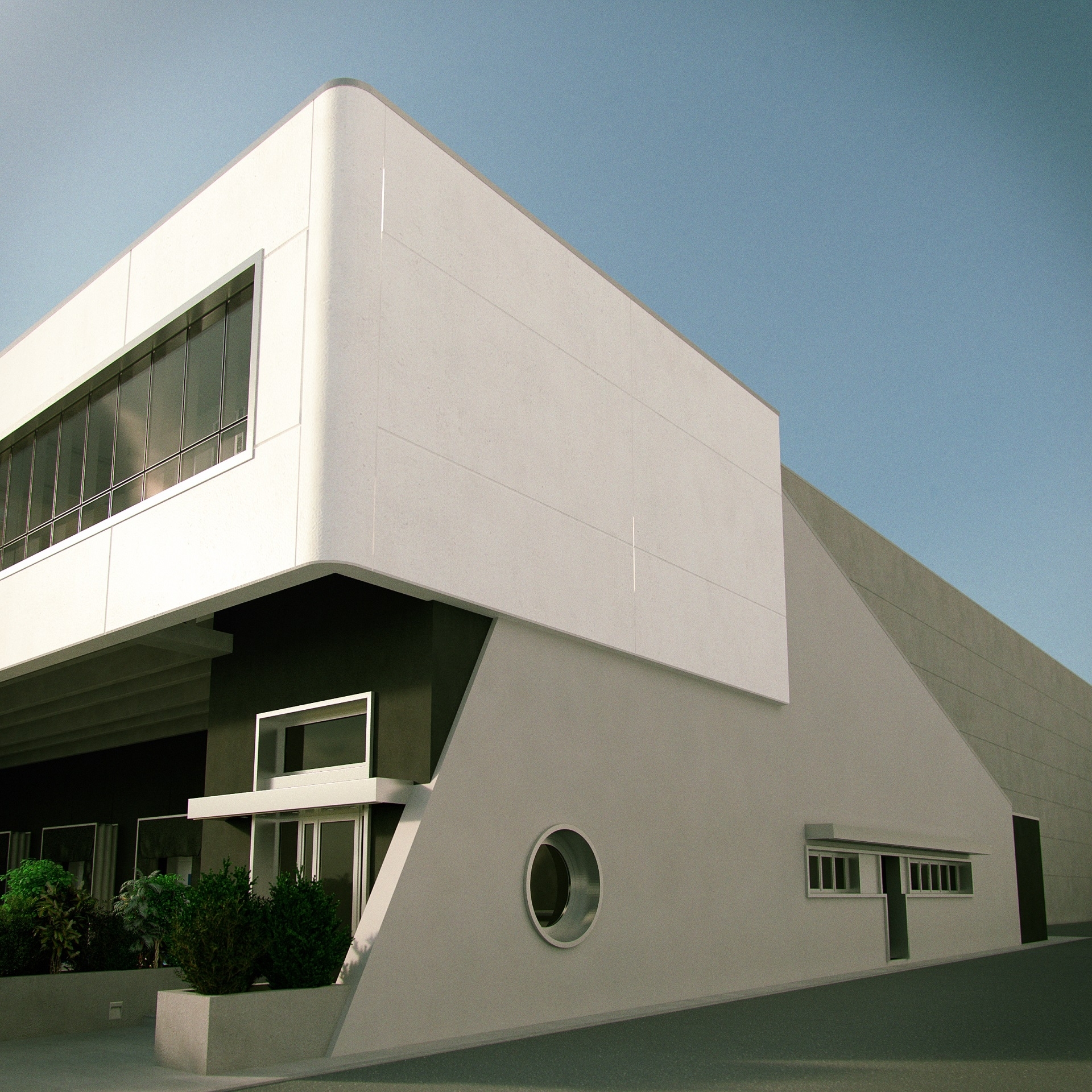 uno sbalzo di 7 metri, destinato ad uffici e spazi di rappresentanza.