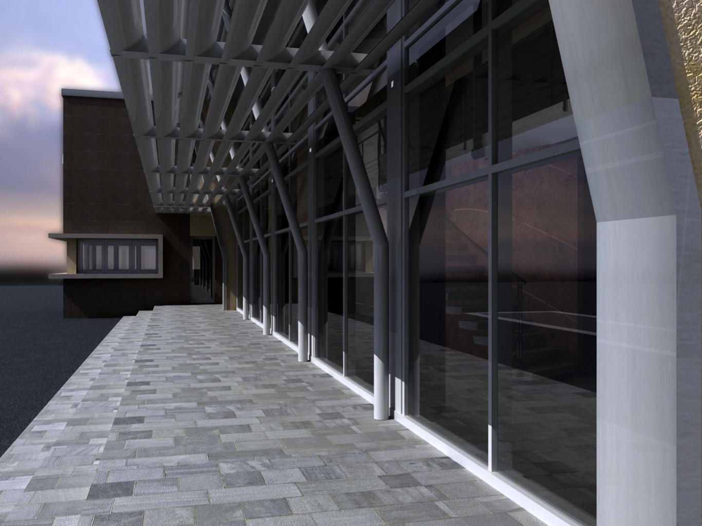 Nel terzo corpo di fabbrica affacciato sui piazzali di stoccaggio dei materiali, e dotato di accesso autonomo dall’esterno, sono individuati gli uffici riservati agli addetti al piazzale e al controllo della logistica nonché l’alloggio del custode; questi uffici necessitano di un ampio affaccio sul piazzale pertanto dispongono di ampie aperture a nastro orientate verso le aree esterne di lavoro, che sono in tal modo sorvegliate così come i traffici in entrata e in uscita dallo stabilimento.