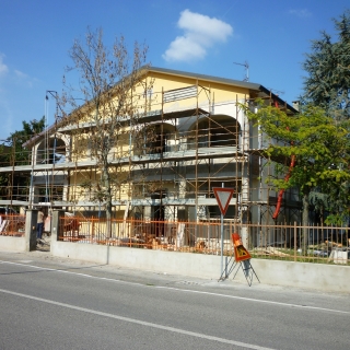 Ristrutturazione totale di una casa dalla tipologia tipica degli anni '60 con tetto a due falde e scala esterna sul fronte principale; completamente trasformata con un intervento di ristrutturazione ed ampliamento che l'ha "ringiovanita" è oggi una casa moderna dal gusto classico in linea con le attese dei nuovi proprietari, i quali peraltro, avevano fatto espressa richiesta di disporre di uno spazio porticato di cui l'edificio originario era sprovvisto.